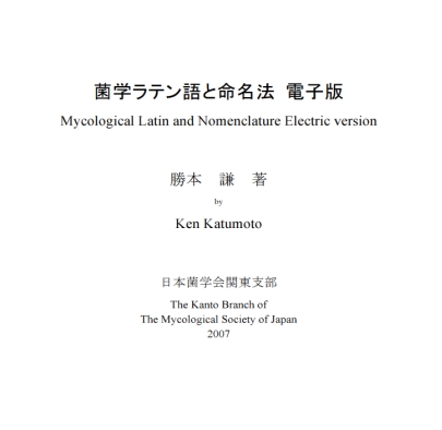 勝本 謙先生の名著「菌学ラテン語と命名法」は、菌類の分類を指向する人ばかりでなく、植物学ラテン語に関わる人であれば、何らかの形で接することがある文献でしょう。本書は、日本菌学会関東支部から、1996年に1,500部が発行されましたが、現在では絶版となっております。このたび、日本菌学会関東支部では本書を再発行することになりましたが、時代の流れとともにIT技術が急速に進歩したこともあり、コスト低減や、使い勝手を向上する意味から、電子版で再版することにしました。原書は前半が文法・命名規約の解説、後半が和英羅・羅英和の辞書となっているため、前半部分はPDFで、後半部分は電子英語辞書「英辞郎」で採用されているシェアウェア「PDIC」を利用することにより、電子辞書として利用できるようになりました。