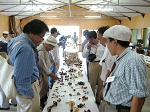 翌29日には菌類採集を行いました。本年は異常気象で富士山周辺ではきのこの発生がおおよそ2週間遅れているとのこと、秋のきのこはあまり多くはなかったものの、通常この時期にはあまり見られないテングタケ類などの夏のきのこが多数採集されたのが印象的でした。採集品は柴田尚氏、山中勝次氏(ホクト産業)、大澤正嗣氏(山梨県森林総合研究所)および服部で鑑定を行いました。昼には地元足和田村の皆さんから地元名物の「ほうとう」を御馳走になり、参加者一同舌鼓を打ちました。