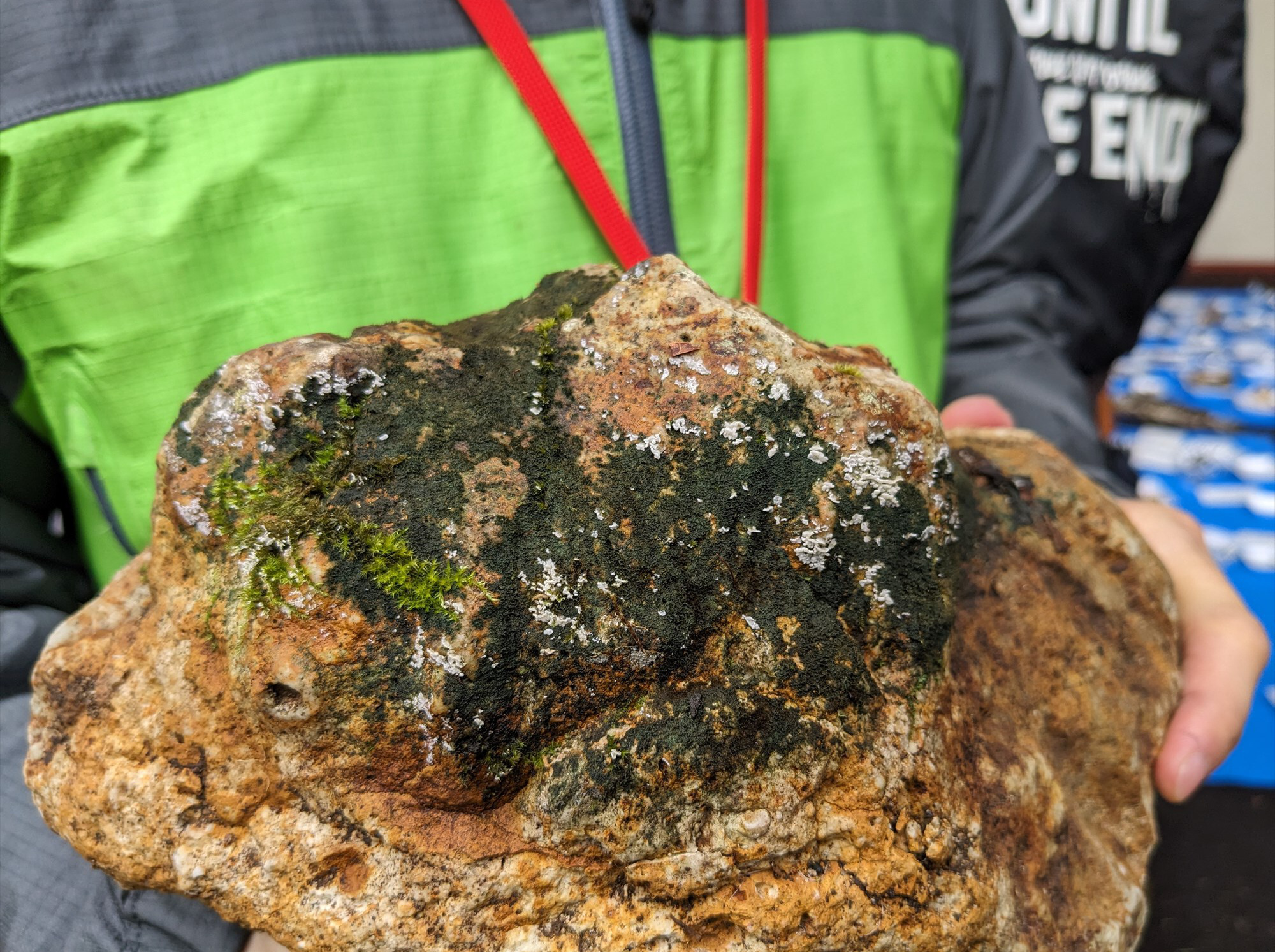 観察会後は昼食を挟んだのち、鑑定会が行われました。鑑定会では多くの専門家が各自の専門分野の菌類について解説されました。国内での発生の少ないニンギョウタケモドキや、担子菌地衣類のイトアミゴケ属の一種、アカモミタケに寄生するHypomyces属など珍しい菌類も採集され、合計152種もの菌類が同定されました。