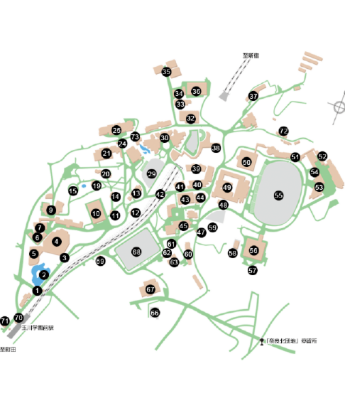 アクセス:小田急線「玉川学園前」駅 南口より、新宿方面へ進み、南口門から入構してください。会場は下地図37番の建物です。(玉川学園前駅南口より徒歩15分)