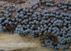 タイトル:キクラゲをおいしく頂きました by ブドウフウセンホコリブドウフウセンホコリ(別名:キノコナカセホコリ)コメント:変形体がしばしば担子菌類の子実体を分解して成長することから。 |