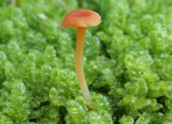 タイトル:苔の野原に咲くヒナノヒガサ |