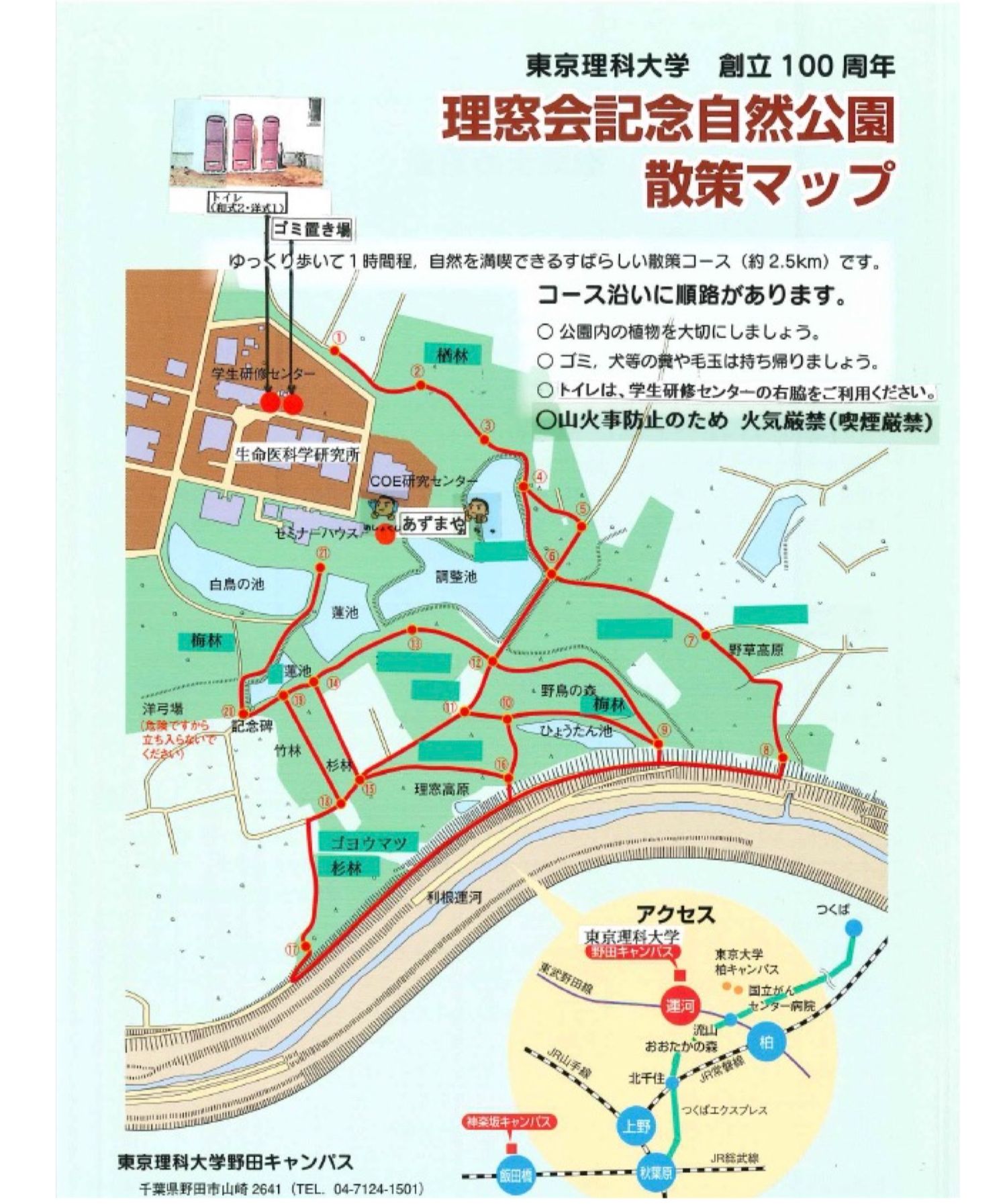 東京理科大学創立100周年 理窓会記念自然公園案内図(東京理科大学提供)