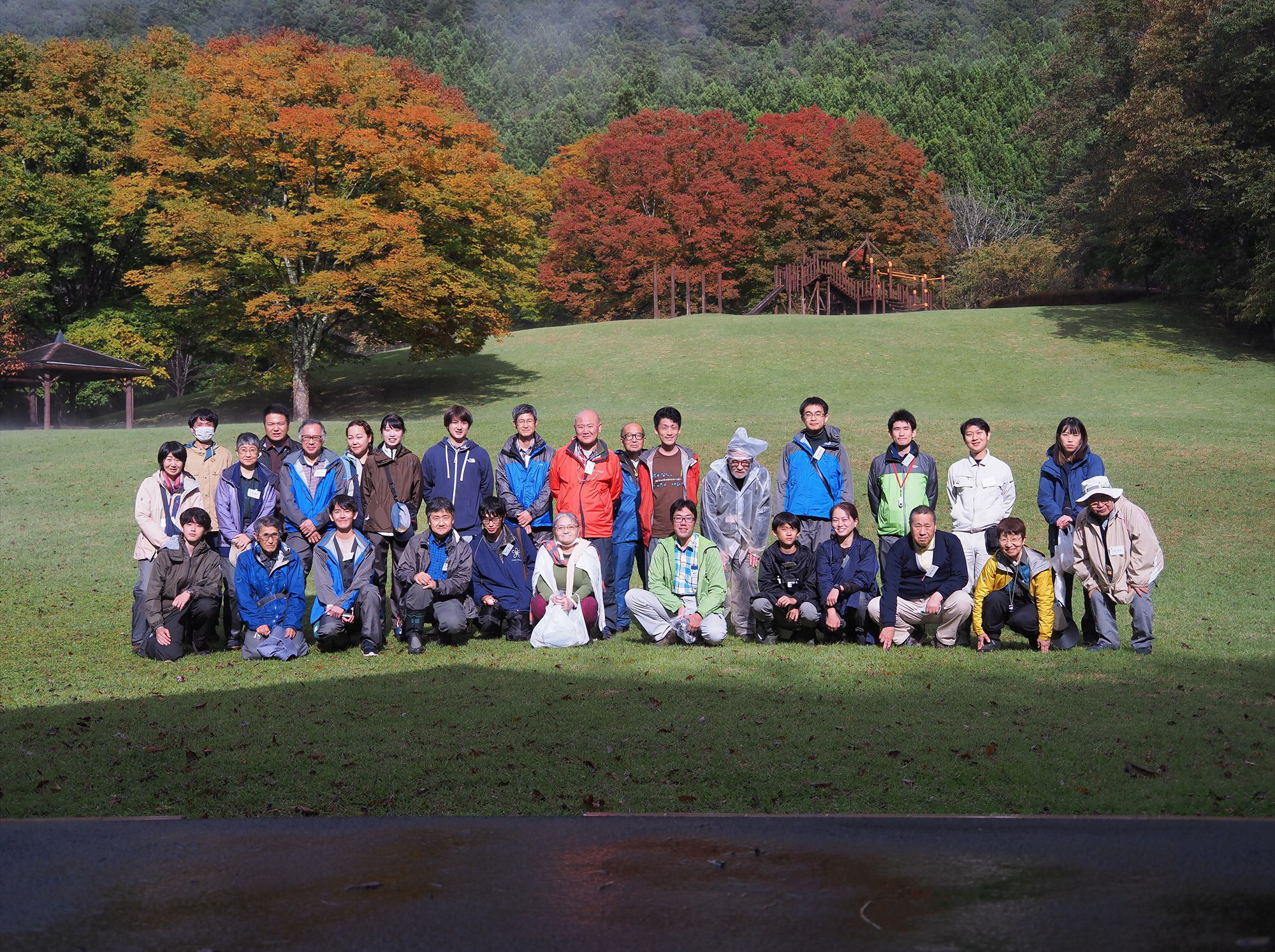 鑑定会後は雨もやみ、記念撮影をしてからの解散となりました。久方ぶりの宿泊を伴った菌類観察会でしたが、参加者の皆様のご協力のおかげで、大きなトラブルもなく、無事に閉幕を迎えることができました。